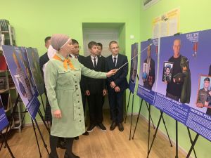 В МБОУ «Кушманская ООШ» советник директора Салахова Ф. Д. провела для учащихся 8 класса пронзительную беседу, посвященную передвижной выставке «Отцы Героя».