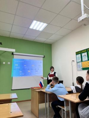 В рамках празднования Дня Государственного герба Российской Федерации (30 ноября) для учащихся 7–8 классов состоялась познавательная лекция «Государственные символы России: их значение и история», которое провела советник по воспитанию А. В. Петухова.
